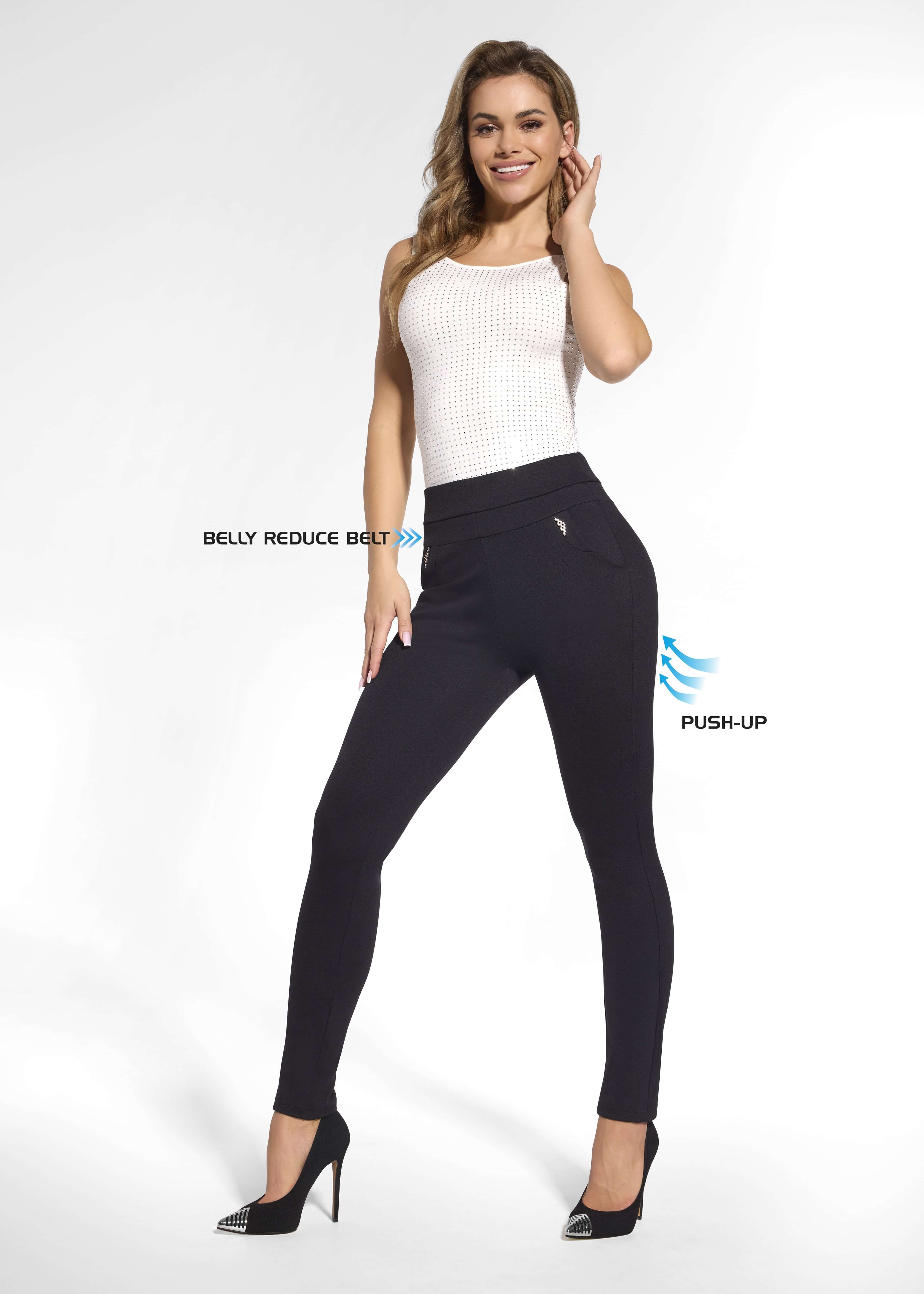Legíny, které vám dodají šmrnc a zvýší dávku sebevědomí! Perfektně tvarují pas a zjemňují křivky, zatímco jemné detaily u kapes přidají na eleganci. Skvělá volba, ať už míříte na schůzku nebo večírek. Baleno v luxusní dárkové krabičce.